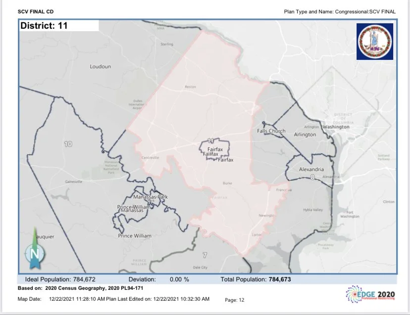 11th Congressional District Map Virginia’s 11th District encompasses most of Fairfax County including the city of Fairfax. As well as the towns of Vienna and Reston. Find out where you’re located here